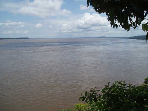 Óbidos endlich wirkte am portugiesischstent, hier glaubte ich schon mal gewesen zu sein, und der Amazonas rückte ein Stück in den Hintergrund, freilich nur in Gedanken, denn hier war der Strom besonders nah und richtig überschaubar. Bei Óbidos nämlich hat er seine engste und tiefste Passage, immer noch vier bis fünf Mal so breit wie unser Rhein. Man erblickt bequem das gegenüberliegende Ufer und hat das Gefühl, einen „richtigen“ Fluss zu sehen. Für die portugiesischen Eroberer war genau dies der Grund, an dieser Stelle Óbidos zu gründen und hier - bei dieser grandiosen Übersicht - ihr Territorium zu verteidigen. Das alte Fort auf dem Hügel über dem Fluss ist heute eine Art Kaserne, ein Offizier zeigt mir betont lustlos die kleine Anlage mit den vor sich hin rostenden Kanonen. Ebenso betont demonstriere ich meine Unlust, ihm ein Trinkgeld zu geben, auf das er spekuliert.