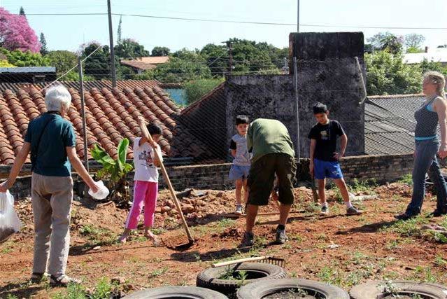 Die Fliesen sollen verlegt werden, alle fänden das gut, Erzieher Gustavo, der mal Architektur angefangen hat, soll das Projekt betreuen. Wir planen, noch während meines Aufenthaltes alle zusammen - mit einigen großen Hortkindern - nach Atyrá ins „Marianela“ zu fahren. Pater Attilio soll uns die notwendige Menge ihrer italienischen Restfliesen aus der Tagungsstätte der Redentoristen überlassen . Begeisterung über den Plan, mir wird wieder einmal klar, dass zu den Projekten auch schöne gemeinsame Erlebnisse gehören.