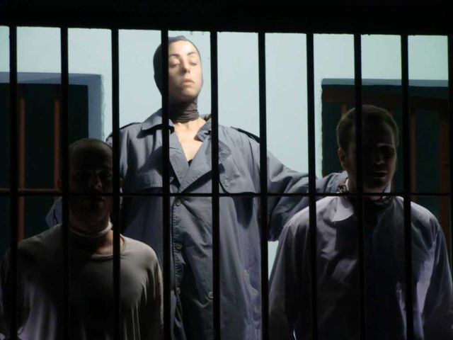 Und heute sitzt er in der ersten Reihe der vor genau dieser Zelle platzierten Zuschauer und sieht zu und hört zu, wie spanische Aktivisten hinter den Gittern ein kleines Stück aufführen, das ein fingiertes Gespräch zwischen dem gequälten Martín und einem befreundeten Besucher nach empfindet - mit teilweise drastischer Dramaturgie des Unmenschlichen.