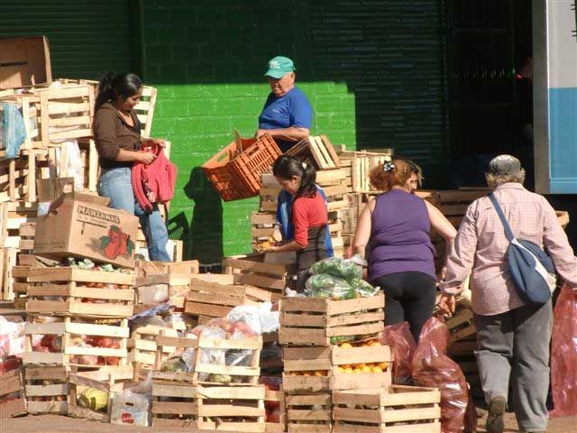 Familien kramen in den faulen Zwiebeln und zermatschten Tomatenhaufen, um noch ein paar brauchbare Exemplare heraus zu fischen, die sie dann in Kartons abtransportieren.
