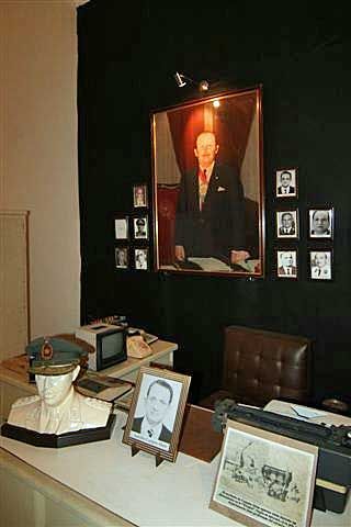 Da ist der Raum, in dem 1974 die ersten Verhöre stattfanden mit genau dem Schreibtisch und einigen Utensilien aus der Zeit - so wie auch das angestrahlte Stroessnergemälde darüber. Viel Öl für einen schlimmen Verbrecher, dem Martín sein Leiden „verdankt“, dem er lebendig nur durch internationale Aktionen entkommt, zuletzt durch Amnesty aus der Schweiz.