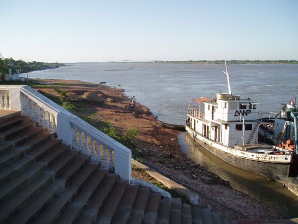 Wir verabschieden uns aus Concepción, halten einen vorbeifahrenden verlotterten Bus mit der Aufschrift Pozo Colorado an und nehmen zunächst Kurs auf die hohe, weit geschwungene Brücke Richtung Chaco. Es ist die jüngere von lediglich zwei Brücken, die den Rio Paraguay bei insgesamt 2000 km Länge durch paraguayisches Territorium überqueren (man stelle sich zum Vergleich ganze zwei Rheinbrücken in Deutschland vor).
