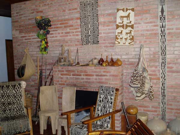 Das Haus von Vera Regent ist eine Art Museum, angefüllt mit eindrucksvollen Stücken aus dem indigenen Kunsthandwerk, Teppiche, Schmuckbänder, Töpfereien, Kopfschmuck und - aus der wiederbelebten Herstellung - Taschen aus Kaktusfasern und Tiere aus Palo Santo, dem wohlriechenden „heiligen Holz“ aus den Chaco – Wäldern. Frau Regent hat dafür gesorgt, das schon fast verloren gegangene Kunsthandwerk wieder zu beleben, der Erlös aus dem Verkauf der Stücke hilft den indianischen Gemeinschaften, ihre Existenz zu sichern.