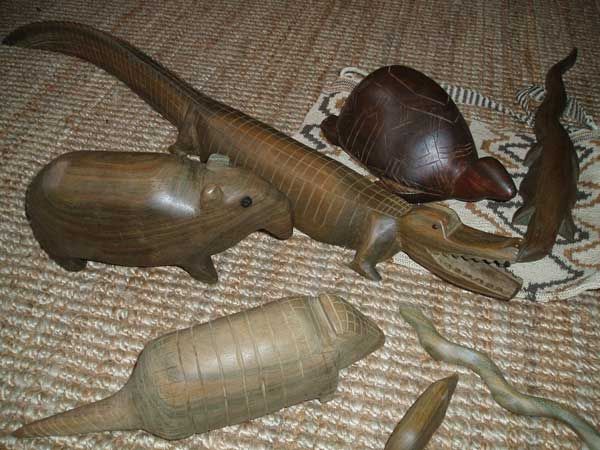 Auch in Kempen und woanders steht so manches Exemplar der Chaco-Tiere im Regal oder auf der Fensterbank: Schweine, Schildkröten, Ameisenbären, Gürteltiere oder Schlangen erfreuen durch ihre einfache schöne Form, schmeicheln in den Händen - oder in der Nase mit dem feinen Harzduft des heiligen Holzes .....