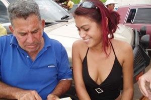 Als wir aus dem Busbahnhof heraus fahren, hält der Chevy-Pilot bei einer ebenso jungen wie offenherzigen Schönheit an.