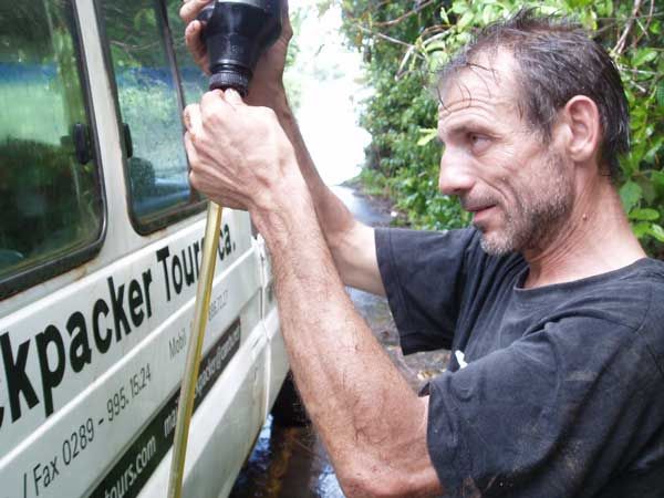 Rettung nahte, nach einer Stunde und wie durch ein Wunder, in Gestalt dreier „Backpacker“-Kollegen, die auch nach Santa Elena unterwegs waren und die gleichnamige Aufschrift auf Gerds Toyota erkannt hatten.