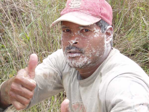 Wir sind hoch willkommen, haben wir doch die Töpfe mit dem noch warmen Essen dabei, welches uns die Frauen in einem entfernt liegenden Camp mitgegeben hatten, und sich so den langen Marsch über Urwaldpisten sparen konnten. Bald steht der Motor still, und wir sehen zu, wie sich die “Indios” nach dem Waschen in freundliche Gesellen verwandeln, die uns zum Essen einladen wollen. Gut, dass wir ablehnen, sie schaffen die riesigen Portionen Bohnen und Fleisch ganz allein, kein Wunder bei der selbst auferlegten Plackerei über 10 Stunden, sieben Tage am Stück, erst danach fahren sie für 2 Tage nach Santa Elena.