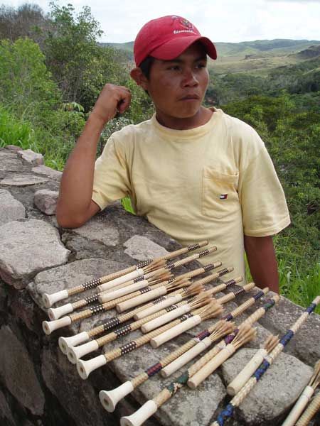 Da gefiel mir eine andere Darbietung schon besser: Zielschiessen der Indianerjungen mit Blasrohren. Toll zu sehen, wie die kleinen Holzpfeilchen mit dem Wattebausch, der gleichzeitig als Luftwiderstand beim Herausblasen aus dem Rohr und Stabilisator beim Flug dient, mit leisem Zischen und äusserst präzise ihr Ziel treffen. Gern hätte ich für Enkel Kilian ein Blasrohr gekauft, aber es würde die Reise vermutlich nicht überleben.