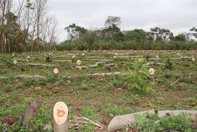 Ein großer Teil ist für Manniok vorgesehen - natürlich, allein seine Familie und die Schweine verbrauchen ca. 50 kg pro Tag, der Rest geht in den Verkauf oder wird zu Manniokstärke verarbeitet. Toll zu sehen, wie mit einem gekonnten Ruck die Knollen - möglichst mitsamt den Ablegern - aus dem roten Boden geholt werden. Im Manniokwald kann man sich nicht verlaufen.