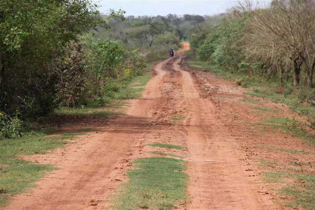 „auf dem Land“, die Straße (eine der wichtigsten in Paraguay), und mit ihr die Verbindung zur Zivilisation, scheint endlos weit weg.