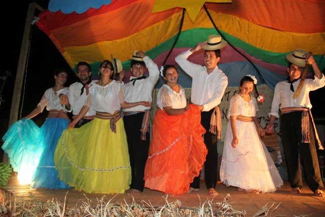 Die „Fiesta de la Semilla Nativa y del folclore campesino“ - „Fest des heimischen Saatgutes und der Campesinoflolklore“ (wow!) findet zum zehnten Mal statt, das Schulteam unserer Partner führt gerade die lang einstudierte Tanznummer vor. 1000 Festgäste applaudieren. Internet und Beamer sind hier inzwischen selbstverständlich -und so kann ich wie geplant Fotos aus Deutschland und Paraguay zeigen.